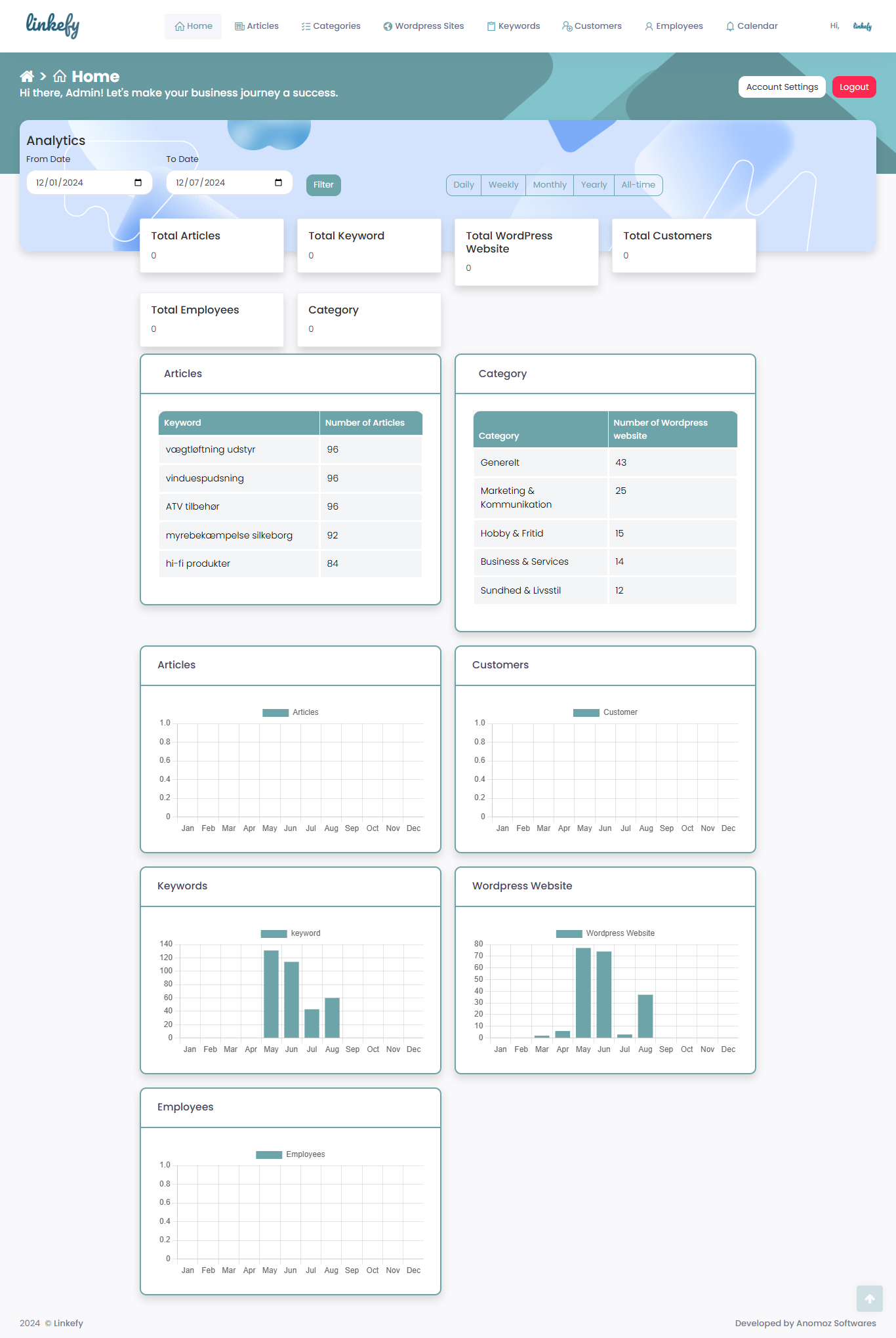 The Keywords feature empowers businesses to optimize their content strategy. By tracking and analyzing relevant keywords, companies can improve their SEO efforts and enhance online visibility. Customers and Employees modules focus on two essential pillars of any business—clients and team members. The Customers module enables businesses to manage client data, track interactions, and build stronger relationships. Meanwhile, the Employees module allows for efficient management of workforce information, roles, and responsibilities, fostering better team coordination.