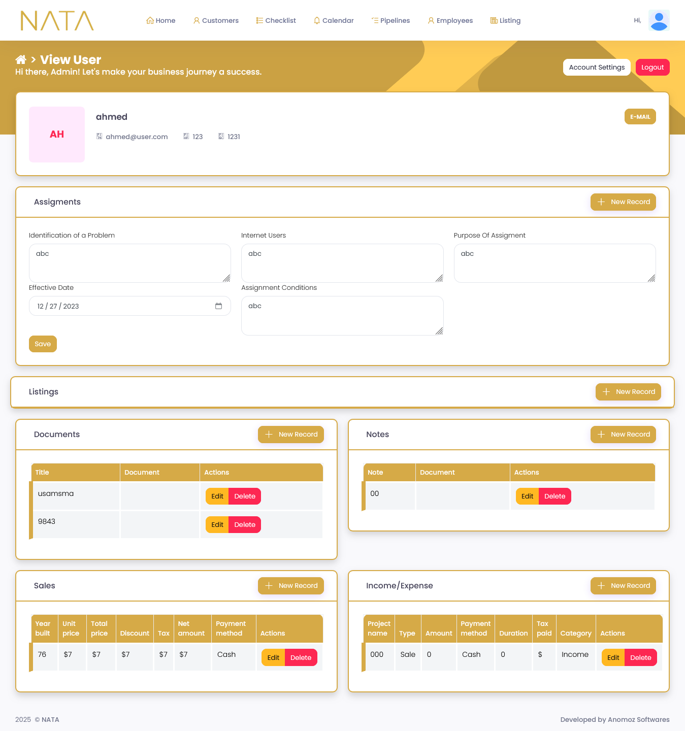 NATA is a task and customer management system designed to organize client information, employee activities, and workflow tracking within a structured platform. The system centralizes customer records, task pipelines, and scheduling to improve operational efficiency.